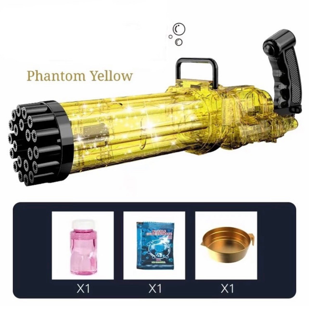 Easy To Use & Powerful 21 Bubble Holes: Simply attach the bubble solution bottle to the base of the bubble blower toy and shoot away. No dealing with messy dip-in solutions. It has Powerful Motor and 21 Bubble holes Enables Over 2100+ Colorful Bubbles Per Minute.
