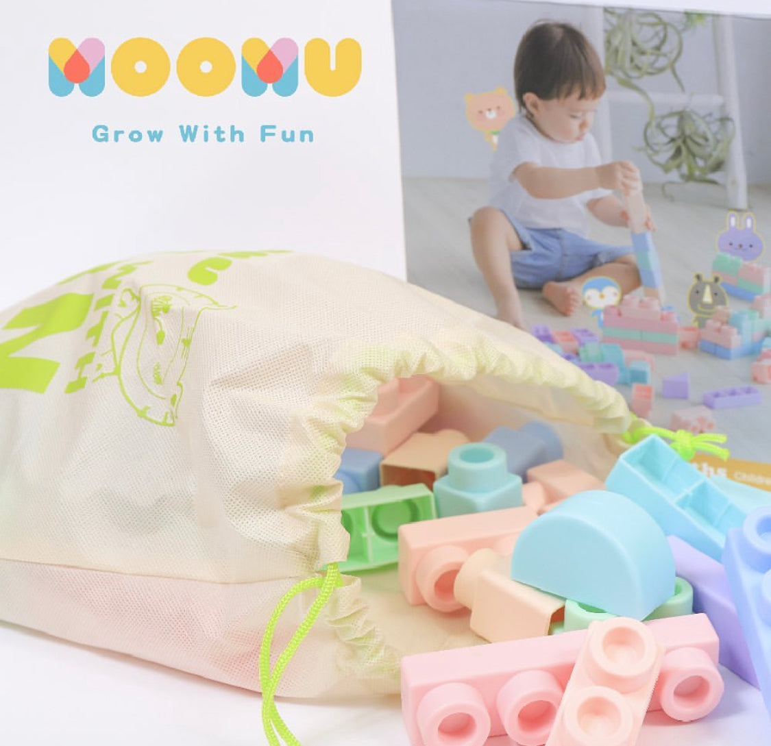 - EASY CLEANING UP & STORAGE: MOOMU blocks are heat resistant and can be easily sterilized by immersing the blocks in boiling water to ensure safety and hygiene. In addition, it comes with a storage bag large enough for young children to learn to organize their toys themselves.